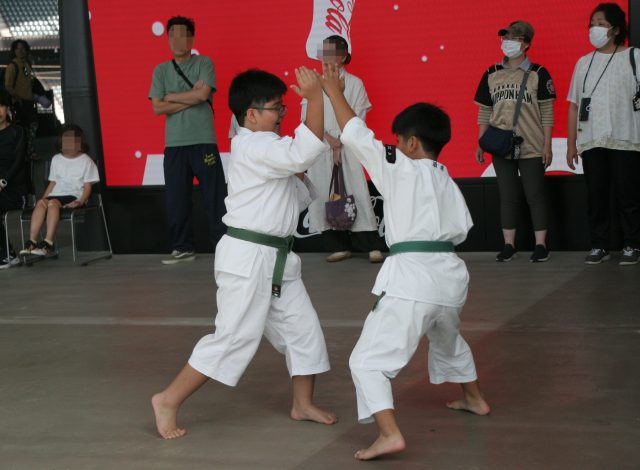 画像は少年組演武、少女大人組演武のデモンストレーションの様子です。