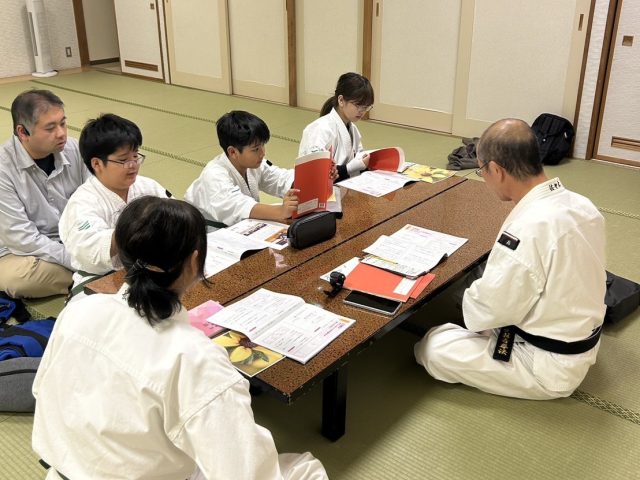 少林寺拳法では、身体と心を一緒に修行します。 本日の学科は「何のために少林寺拳法を修行するのか」です。少林寺拳法連盟が発行する会報にクイズ形式で掲載されていたので、当会報を使いながら学びました。 それは、少林寺拳法を通して自信と勇気と行動力を身につけ、慈悲心(思いやり)と正義感を持った本当に強い人間を目指すこと【自己確立】、そして他の人が困っている時や苦しんでいる時にそれを助け、相手の喜びを自分の喜びに変えられる人間を目指すこと【自他共楽】です。