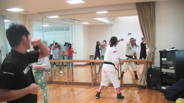 忠和公園体育館ボクシングエクササイズ教室はじまりました。まずは布教活動。今回もお手伝いいただき、少林寺拳法デモンストレーション。技は内受突、流水蹴、小手抜、十字小手の4つ。今年もステキなプレゼントをご用意しておりますので、最後までよろしくお願い申し上げます。