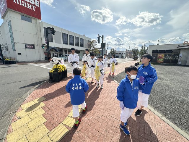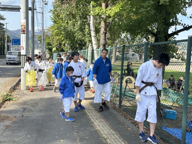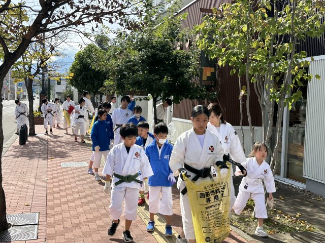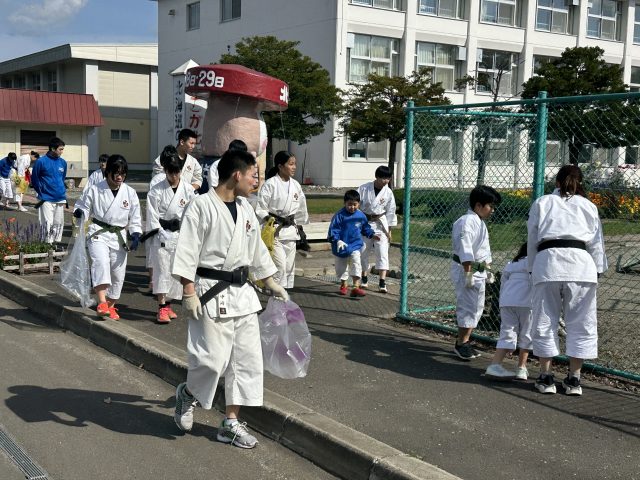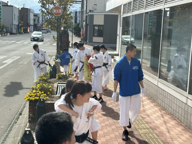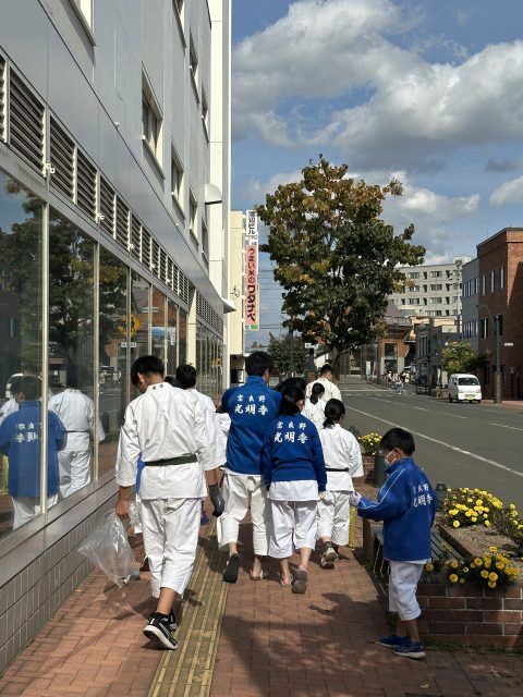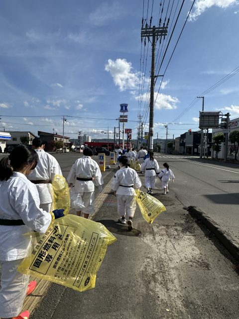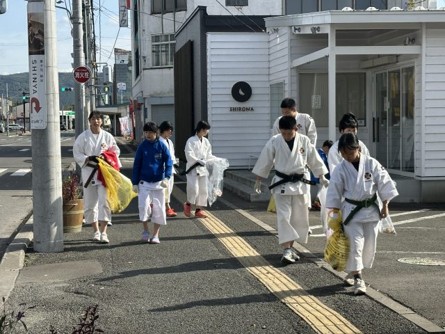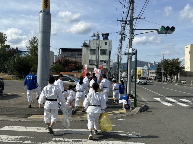 富良野市が推進する秋の地域美化運動に道院の奉仕活動の一環として、市内中心市街地のゴミ拾いを拳士全員で実施しました。
