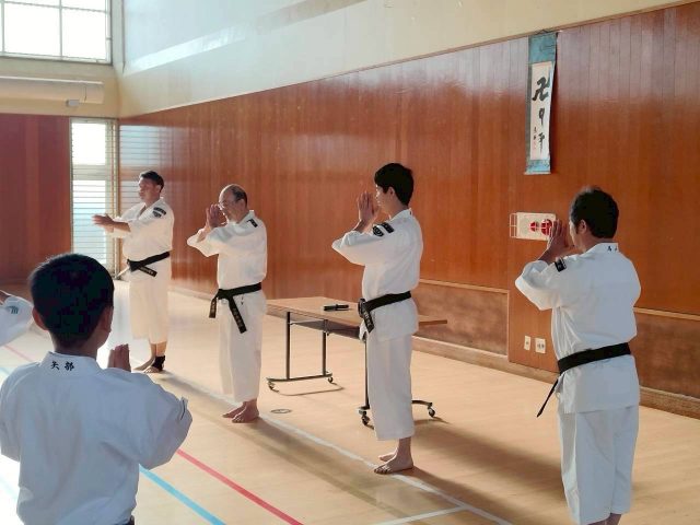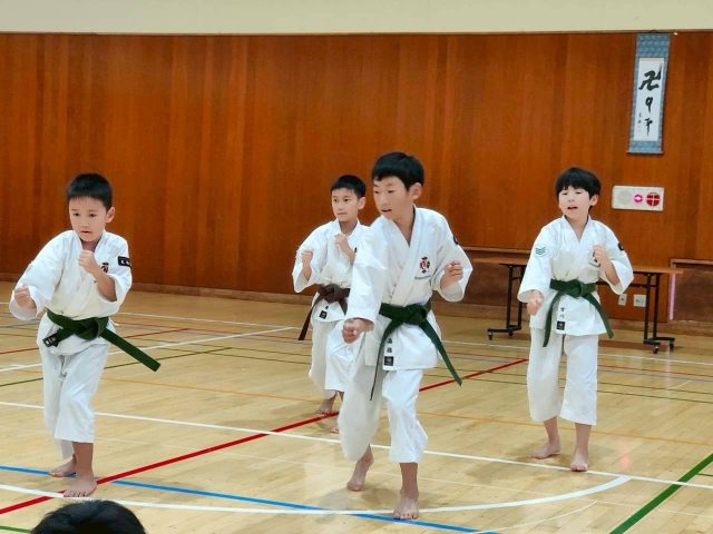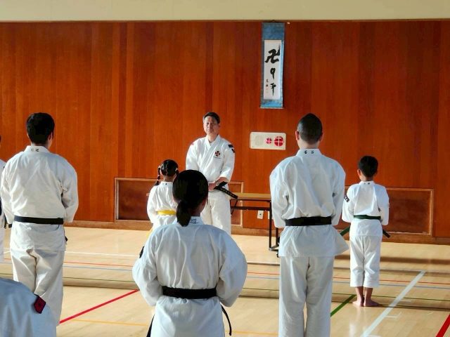 小学生から大人までの拳士が参加し、最後は小学生拳士や一般の級拳士や前の週に行われた全国大会に出場した矢部武専委員長とご子息の親子演武などの発表もありました。