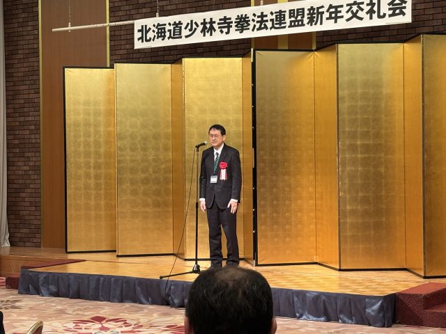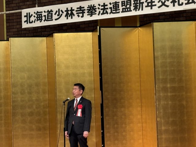 北海道少林寺拳法連盟 白戸理事長からお礼のあいさつがされ、交礼会の締めを今年、北海道大会の開催地である千歳市の少林寺拳法協会の本宮輝久会長より頂き、閉会しました。