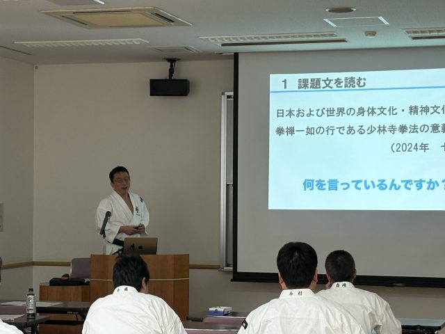 武専は午前中、金剛禅学習「少林寺拳法の修練はなぜ金剛禅の修行たり得るか」、地区別設定講座は「論文の書き方」を行いました。